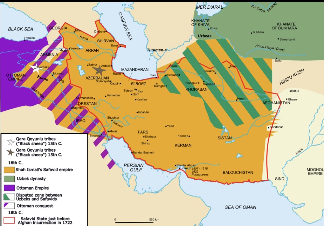 Pour comprendre la transformation de l’Iran, il faut se tourner vers l’émergence de la dynastie safavide au début du XVIe siècle. Le fondateur de cette dynastie, le Shah Ismail Ier, va opérer un choix décisif aux motivations autant géopolitiques que religieuses. Au début du XVIe siècle, l’Iran est un État fragile, pris en étau entre deux puissances sunnites expansionnistes : l’Empire ottoman à l’ouest et les Ouzbeks à l’est. Pour Ismail Ier, imposer le chiisme comme religion d’État en 1501 poursuit un objectif stratégique clair : forger une identité nationale forte et distincte pour unifier ses territoires face à la menace ottomane . En faisant du chiisme la marque de fabrique de son empire, il coupe idéologiquement ses sujets de leurs voisins et élimine le risque d’une « cinquième colonne » sunnite fidèle au calife ottoman . C’est un acte fondateur de ce que les historiens appellent les Mamalik-i Mahrusa-yi Iran (les « Domaines protégés d’Iran »), où l’identité persane et la foi chiite deviennent indissociables .